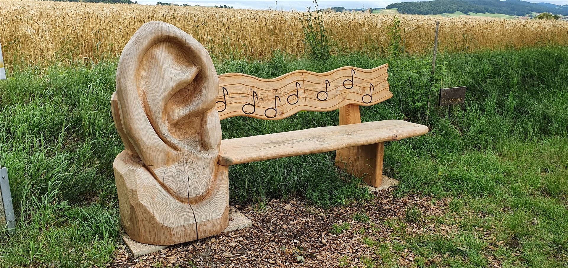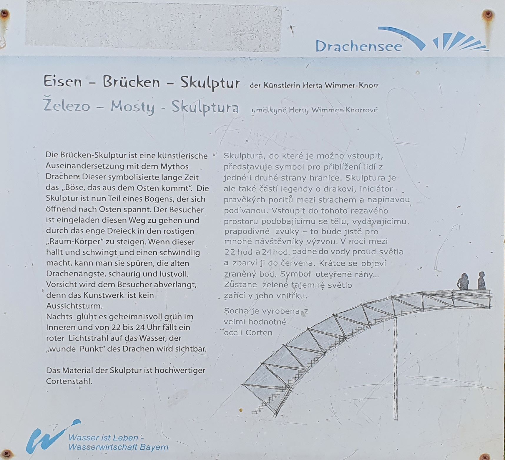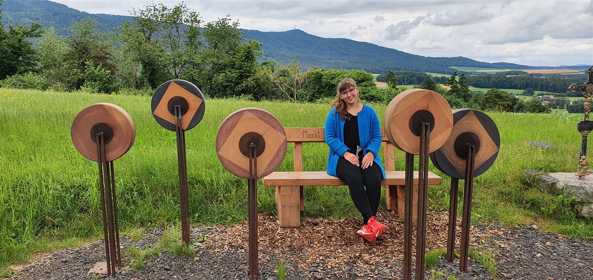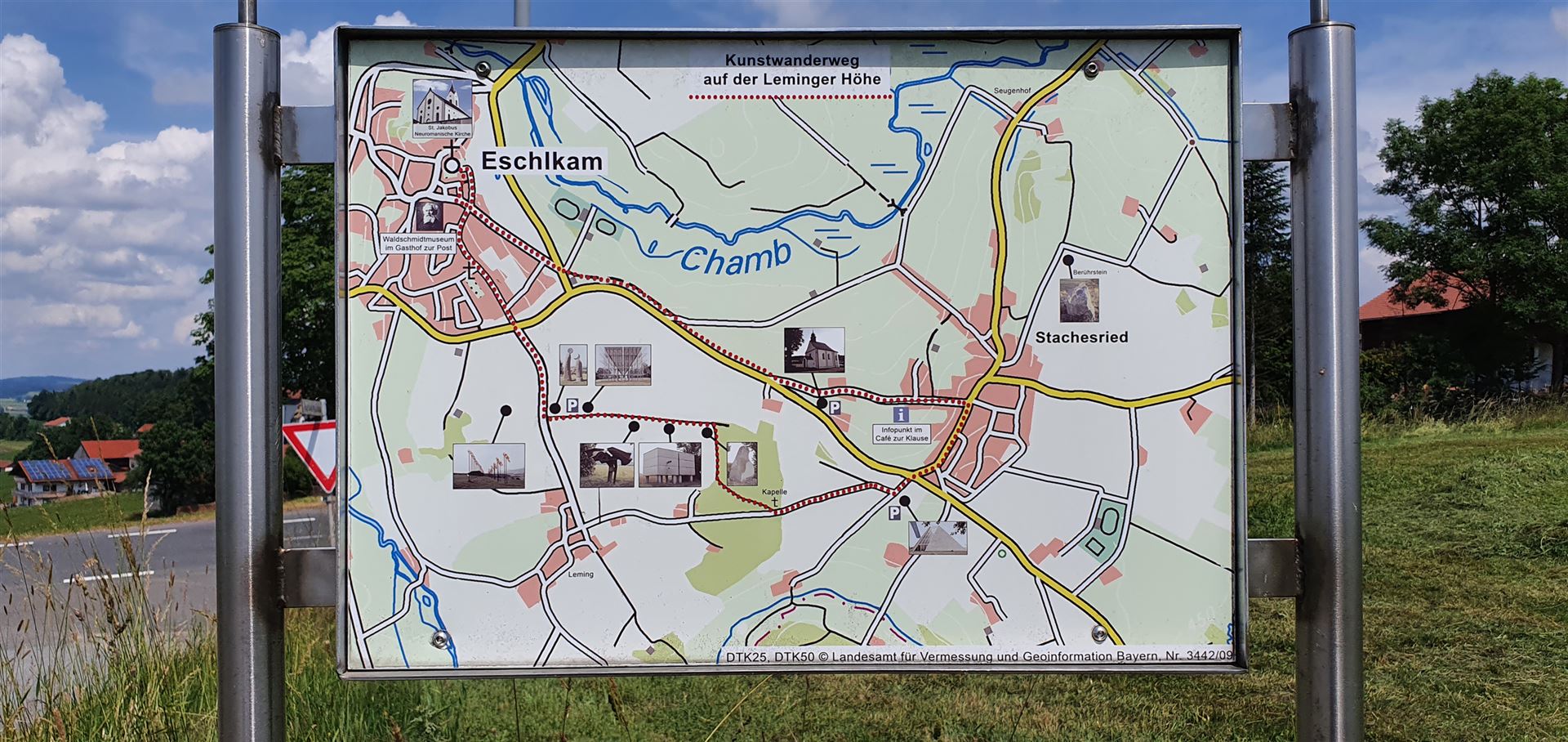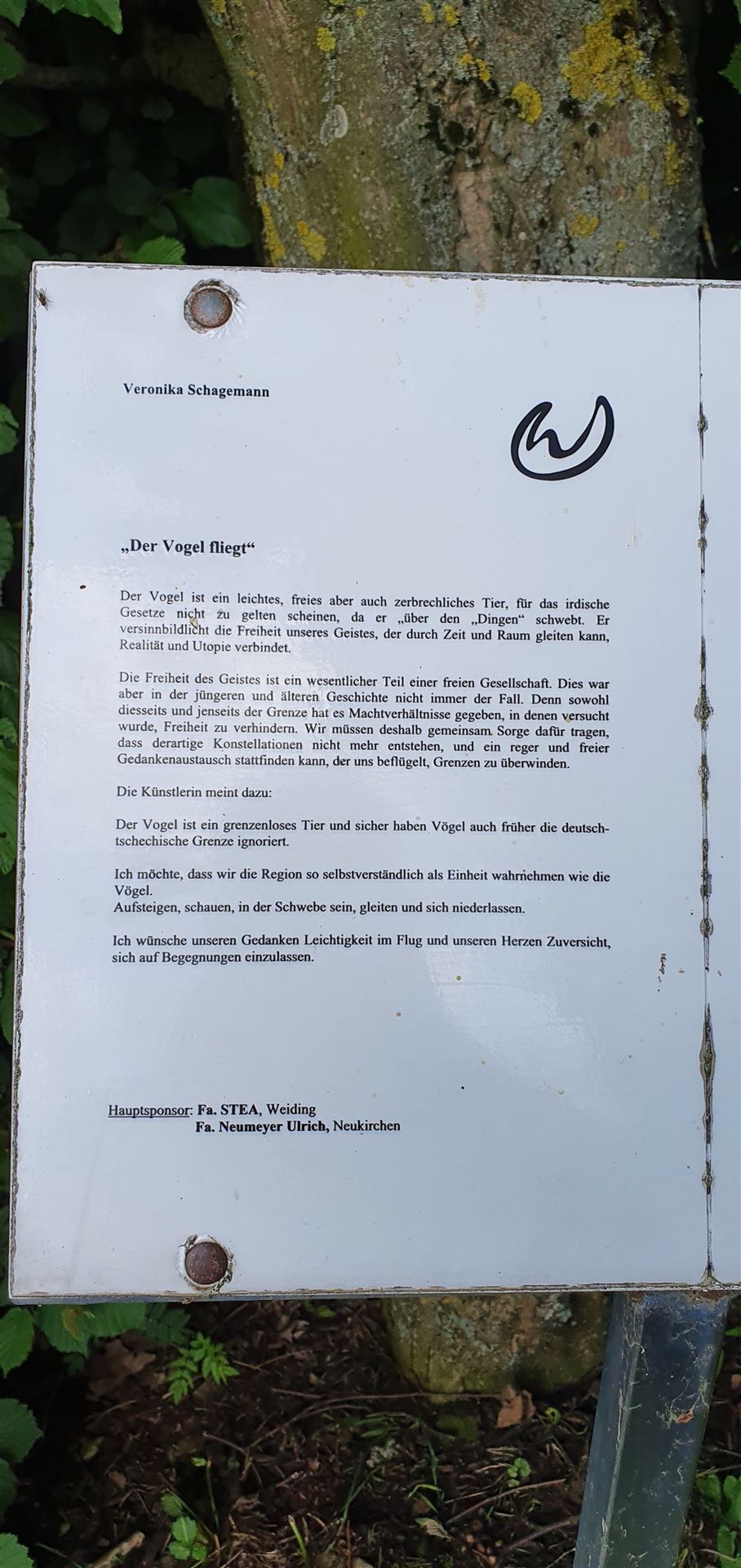 Da es sich um einen Kunstwanderweg handelte, machten wir uns jetzt an die Wanderung. Mit Umwegen kamen wir am nächsten Kunstobjekt an, da die Wegbeschilderung mangelhaft war.