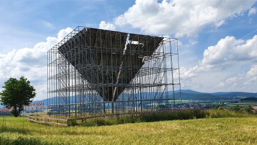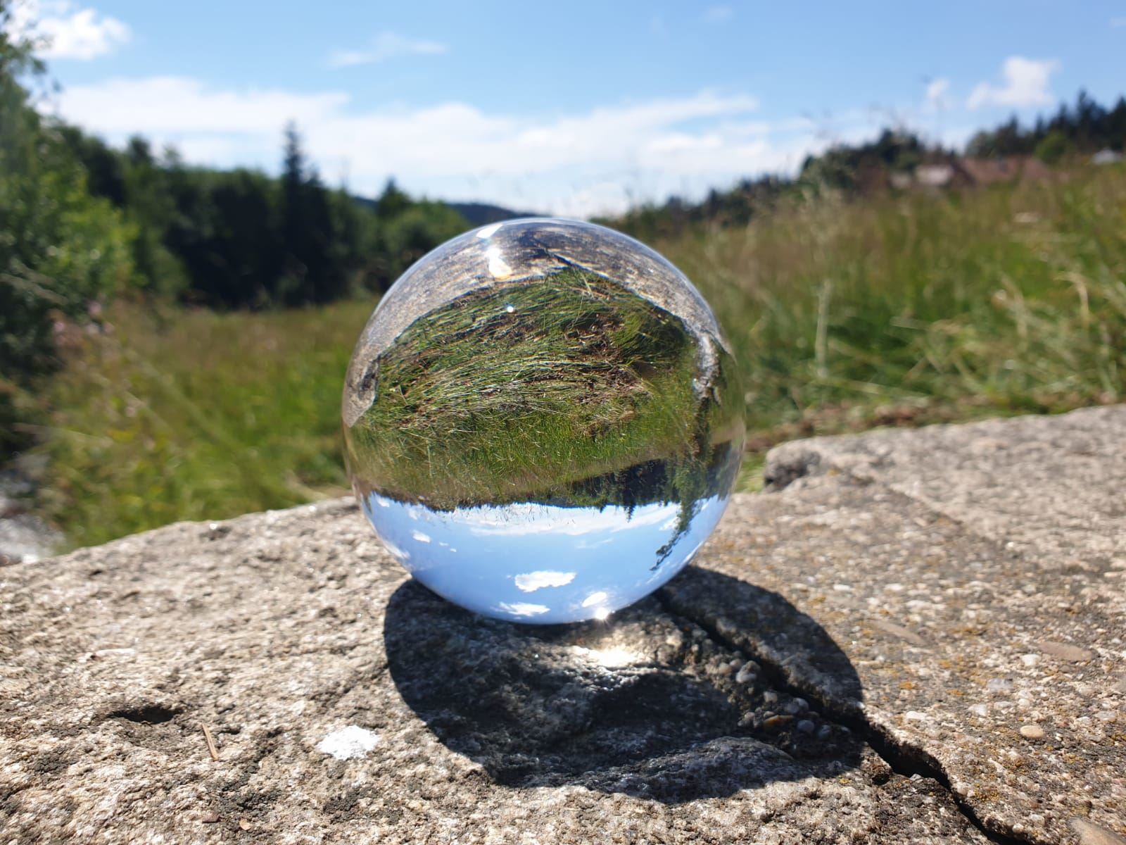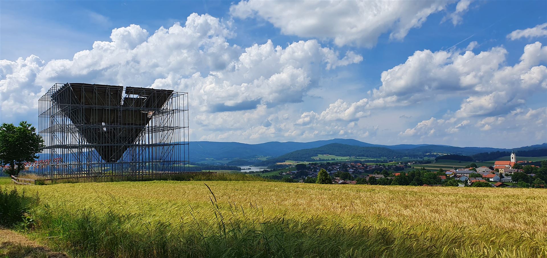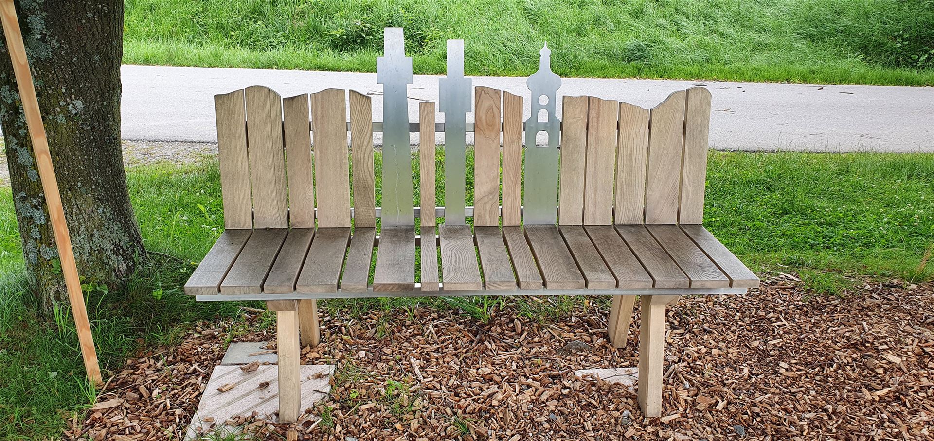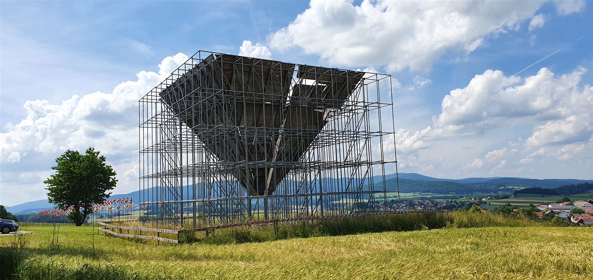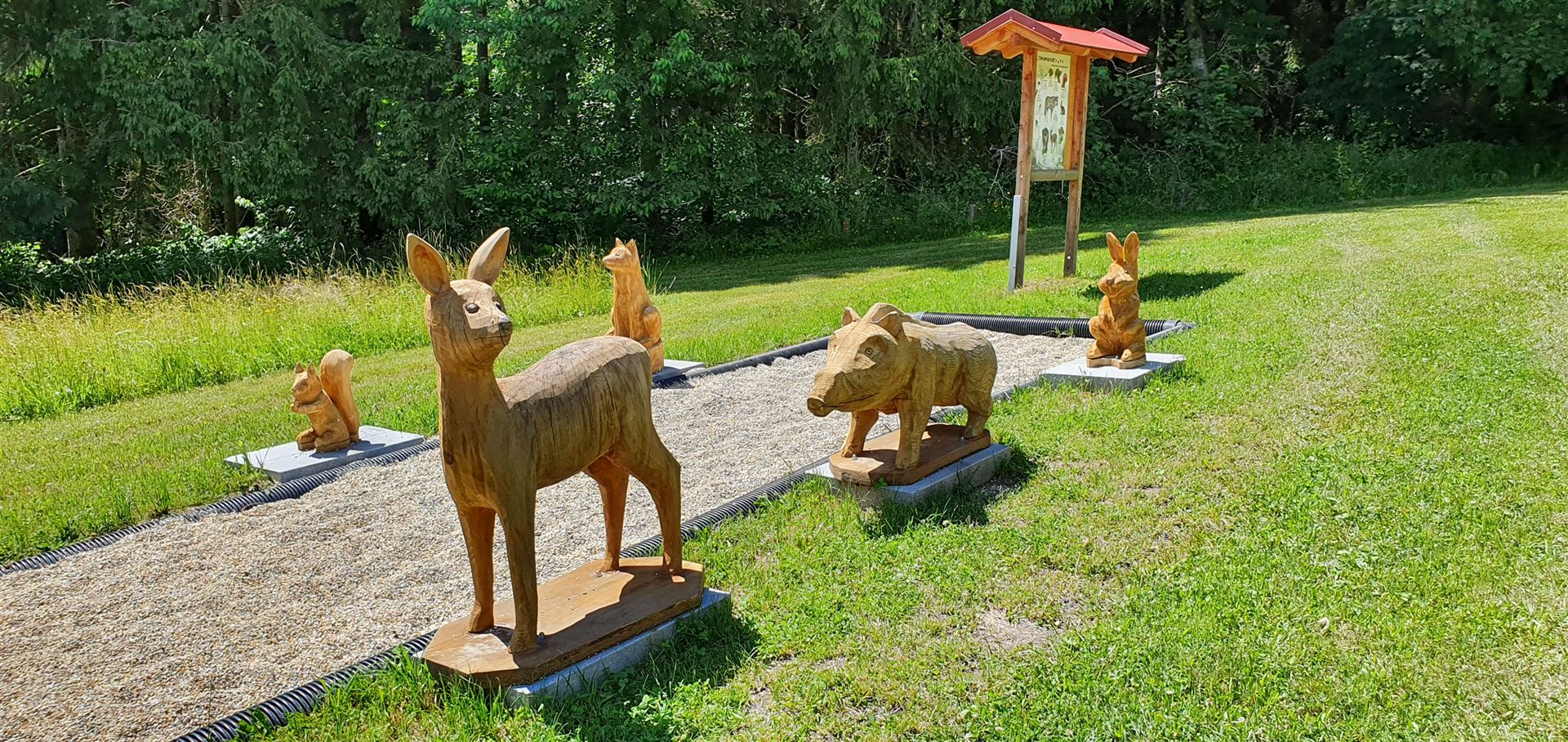 Da es sich um einen Kunstwanderweg handelte, machten wir uns jetzt an die Wanderung. Mit Umwegen kamen wir am nächsten Kunstobjekt an, da die Wegbeschilderung mangelhaft war.