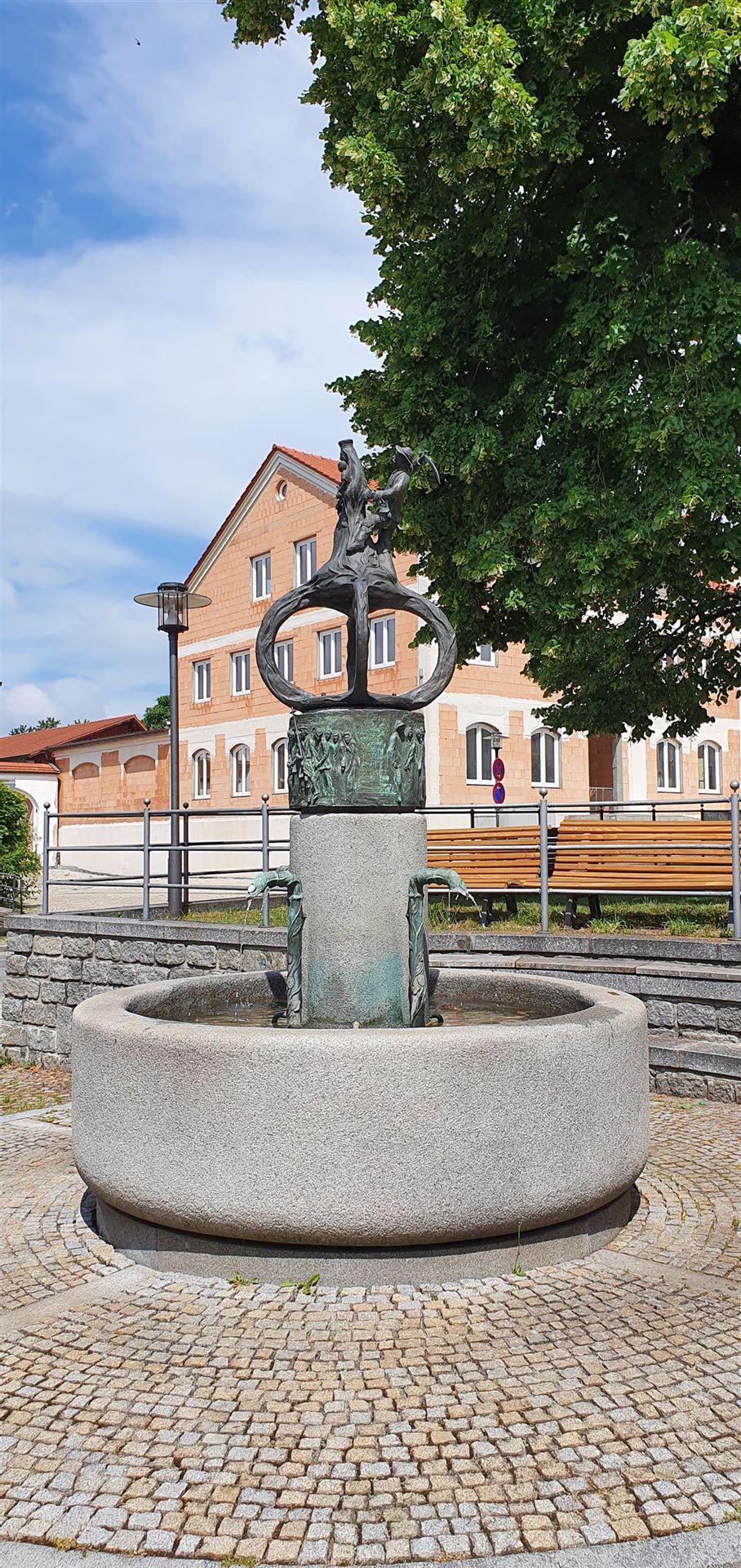 Direkt vor dem Eingang begegnete uns der Dorfbrunnen: