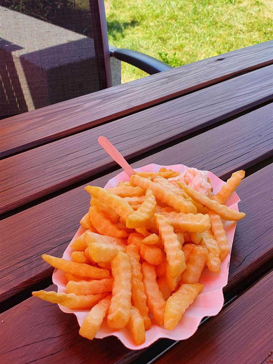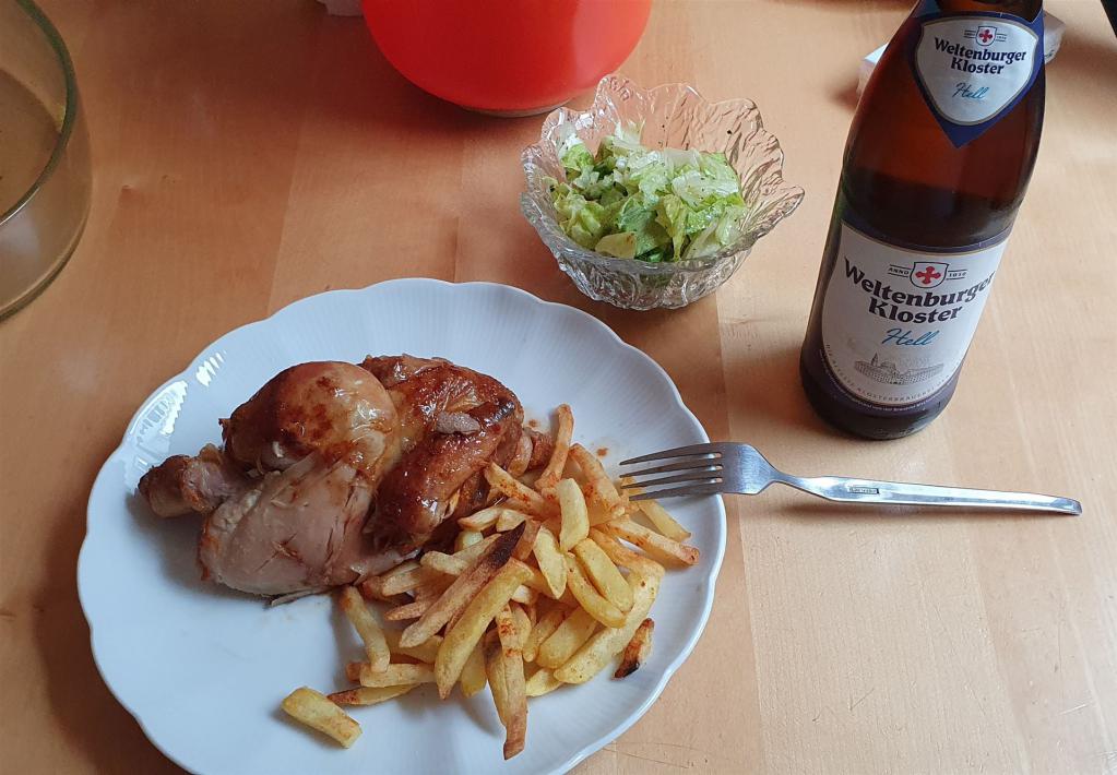 Zwischendurch genossen wir bei der Hitze ein kühles Bier und teilten uns eine Portion Pommes.