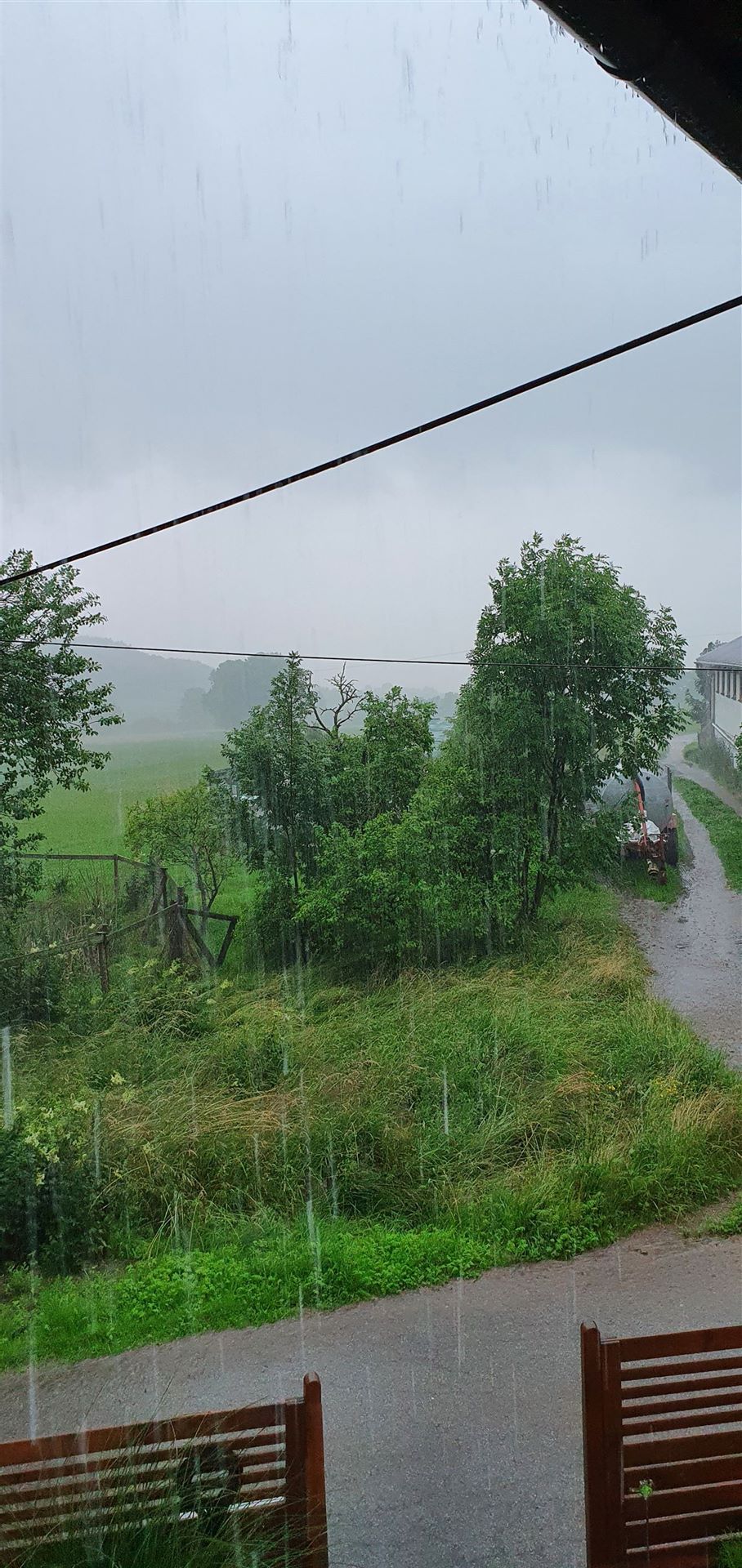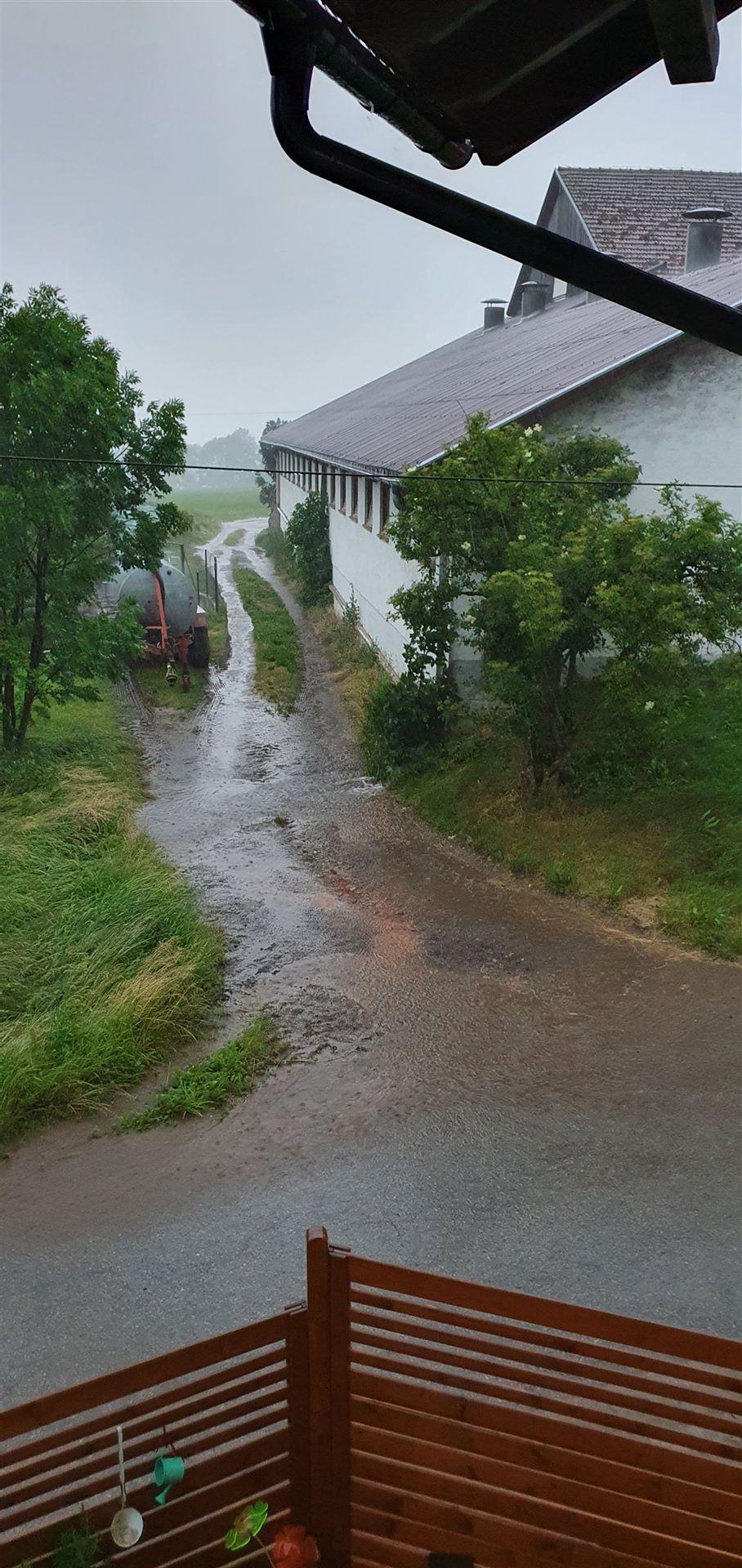Unser Vermieter kam von der Arbeit nach Hause und erzählte, dass Neukirchen unter Wasser steht. Die Gullys nahmen kein Wasser mehr auf, sondern es sprudelte aus ihnen welches hinaus.