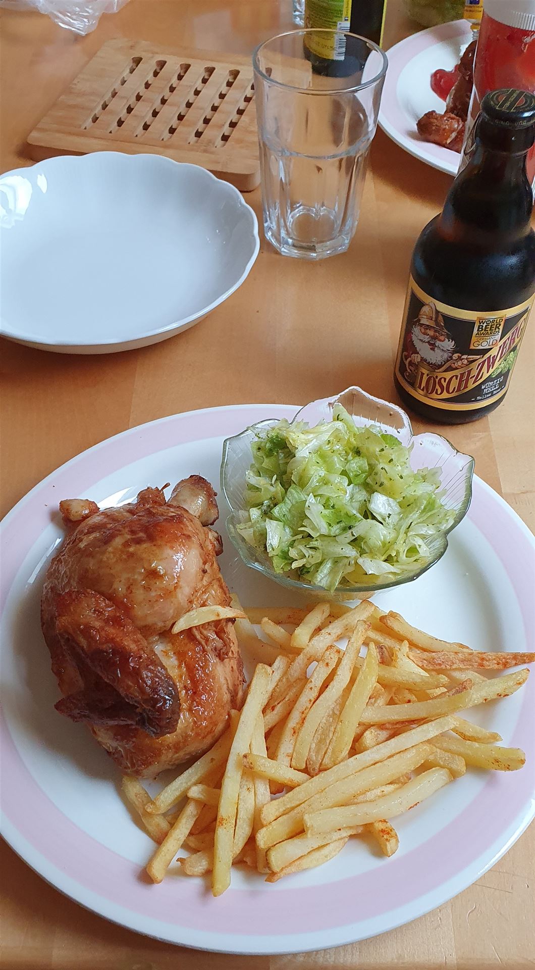 Man holte sich sein Stück Fleisch ab und konnte es dann mit Pommes, Reis, Kartoffeln, Nudeln und Kartoffelecken ergänzen.