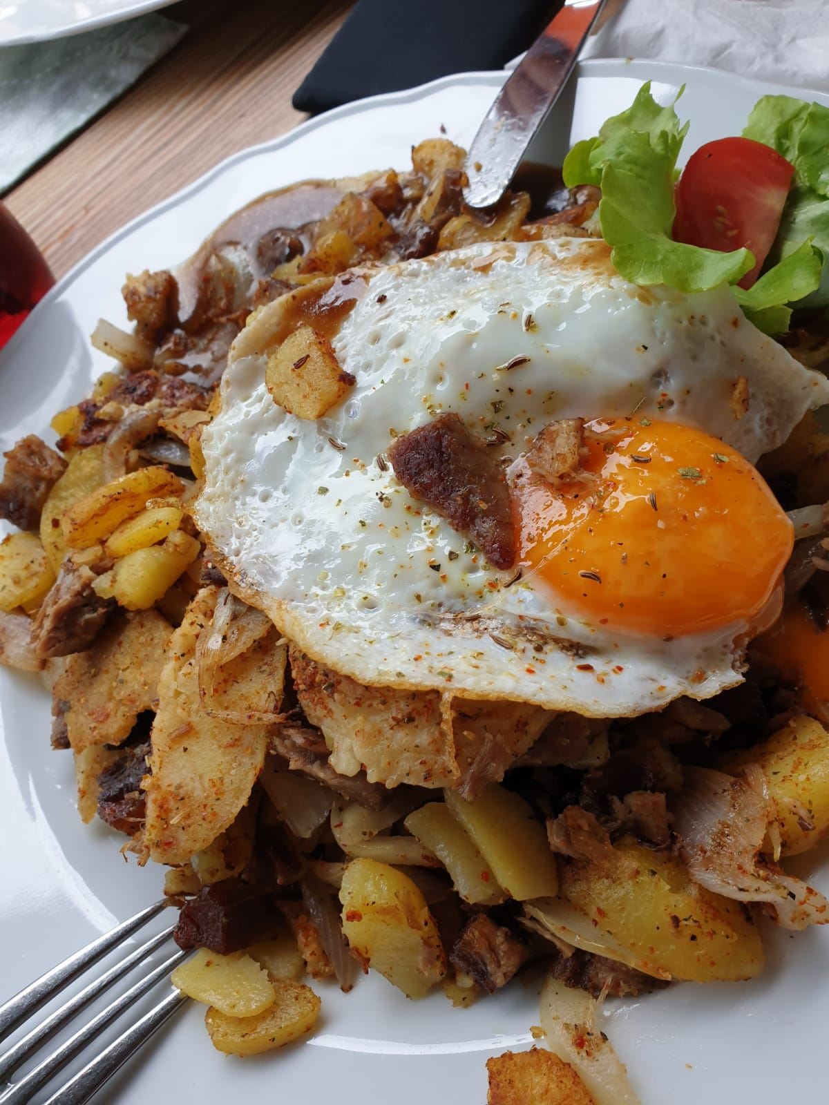 Der Chef des Hauses pries uns die Haxen und die Hühner aus dem Steinofen an, die es immer nur samstags gibt.