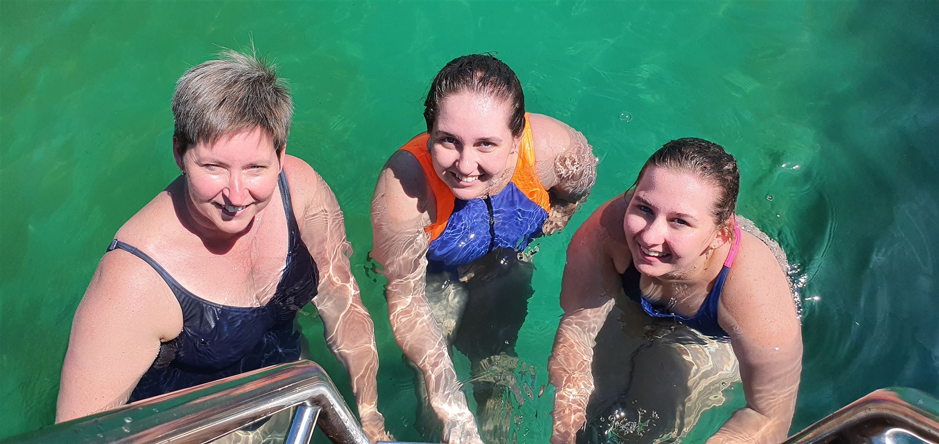 Da es sehr warm war, ging es auch gleich ins Wasser.