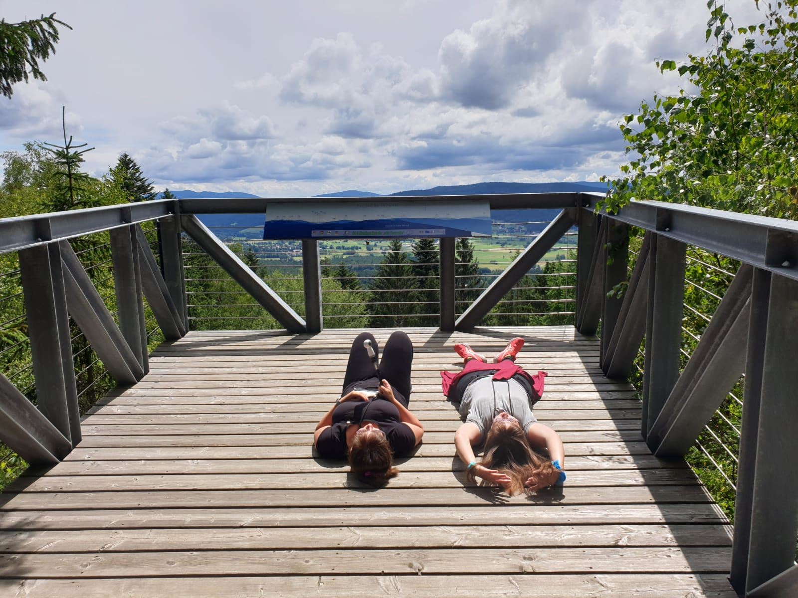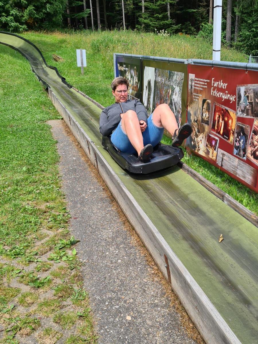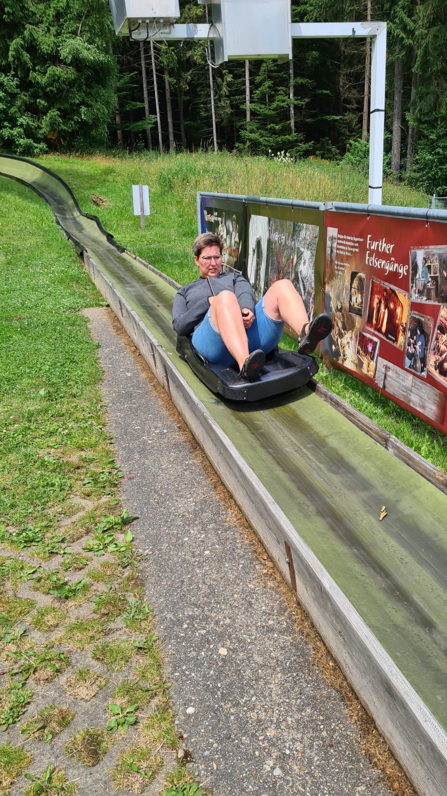 Auf diesem extrem schweren, glitschigen und steilen Weg knickte Leonie plötzlich um. Kurz überlegten wir, ob wir Hans Gruber (na, wer weiß Bescheid?) rufen, aber Leonie lief unter höllischen Schmerzen weiter.