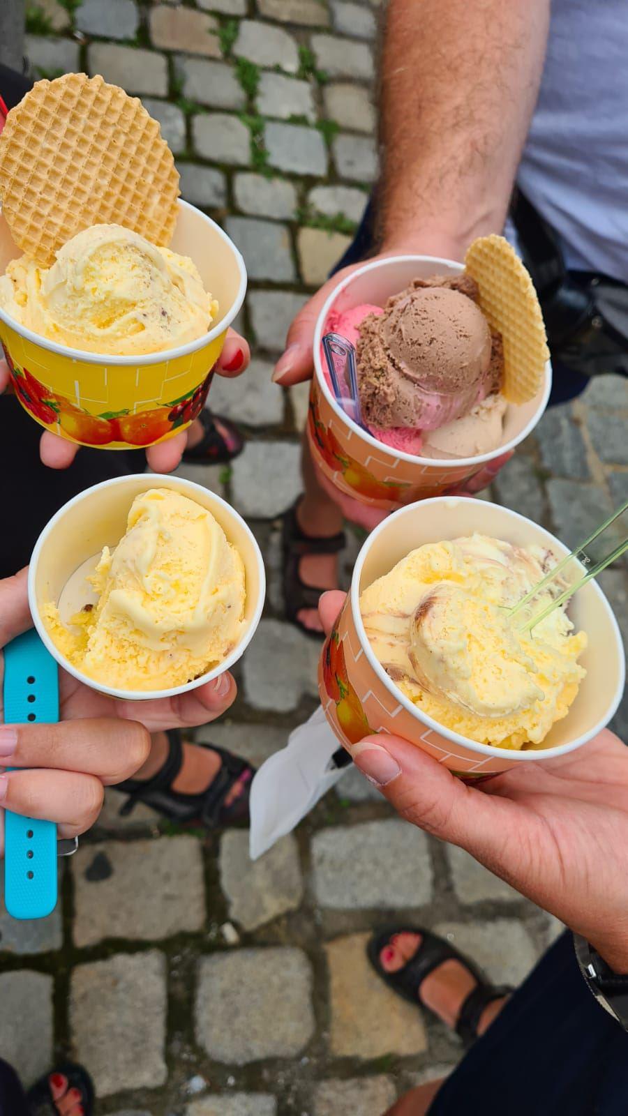 Nach der langen Wanderung und den vielen inspirierenden Eindrücken hatten wir uns ein Eis verdient.