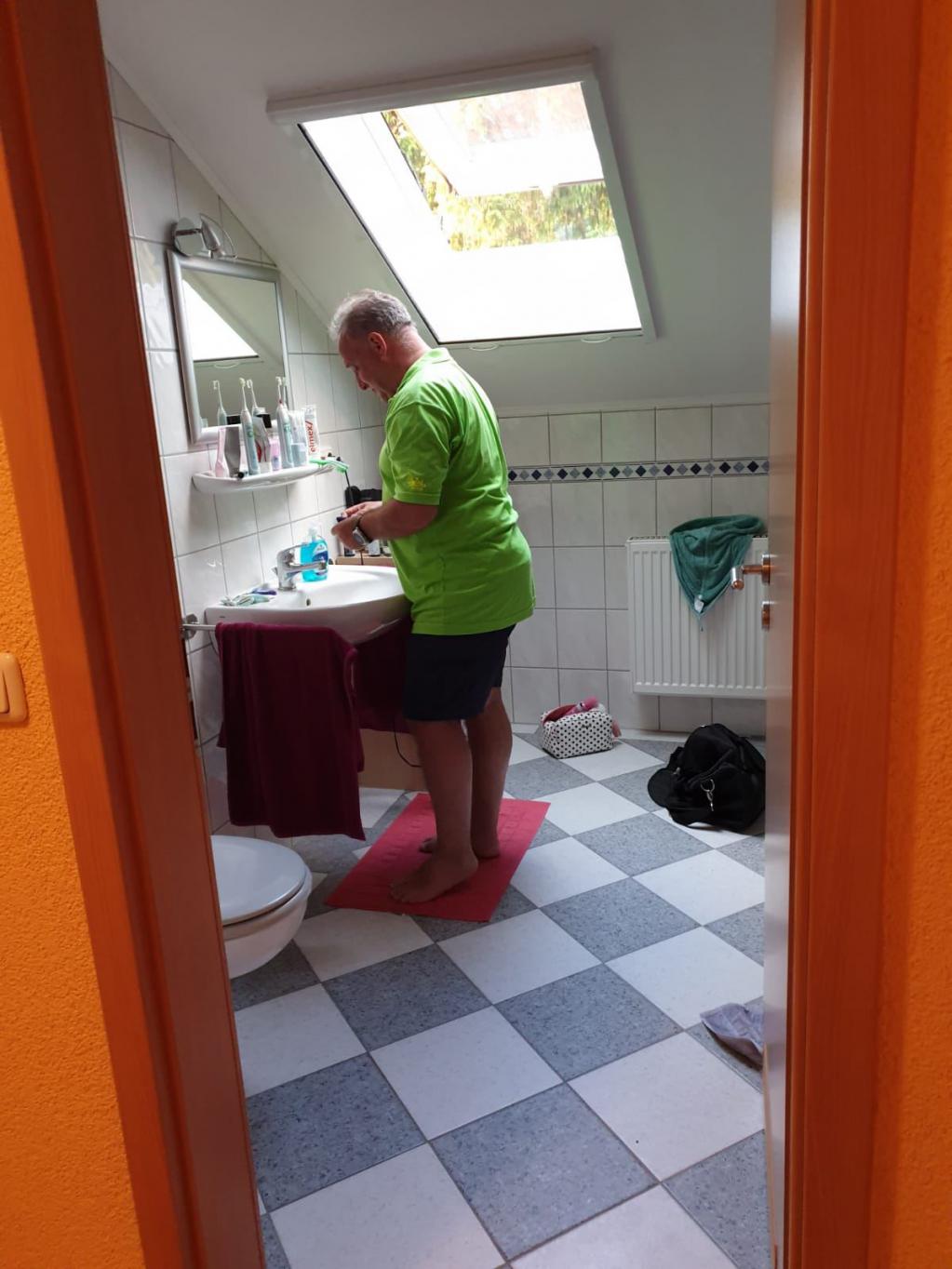 Andreas musste besonders früh raus, da er mit Rita leckeres Brot kaufen fahren durfte. Dabei lernte er noch das Haus mit den beiden anderen Eigentumswohnungen kennen. Direkt fußläufig zum Naturbad, generalüberholt und mit 440,-- € kalt auch nicht teuer.