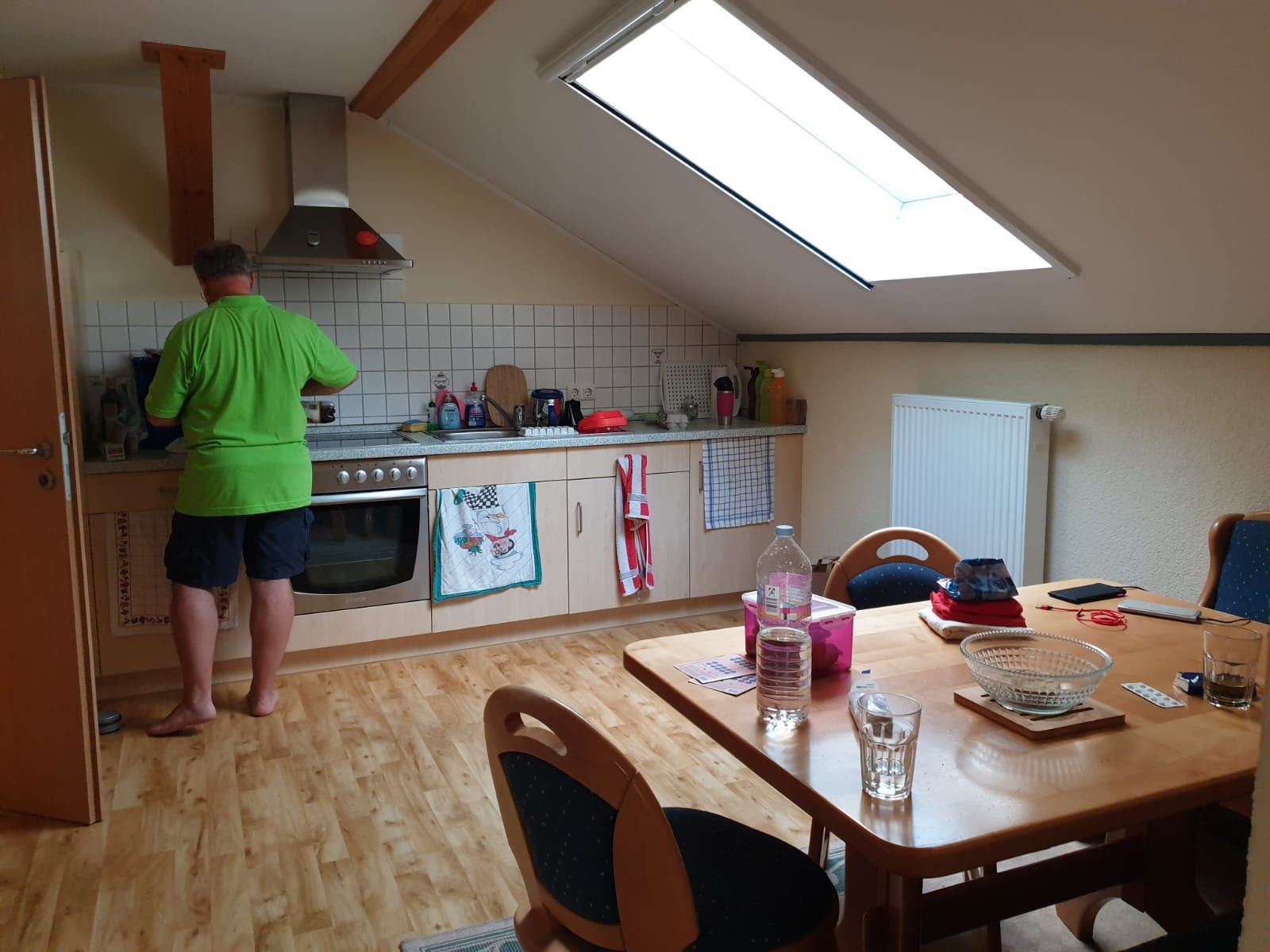 Nachdem sich Henrike und Claudia von den Katzen etwas trennten, räumten wir das Auto leer und brachten alles in die Ferienwohnung unter dem Dach (2. OG).