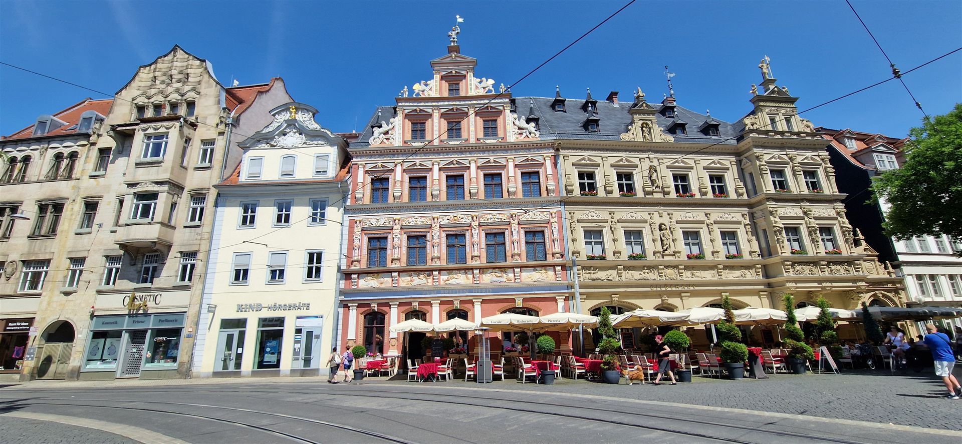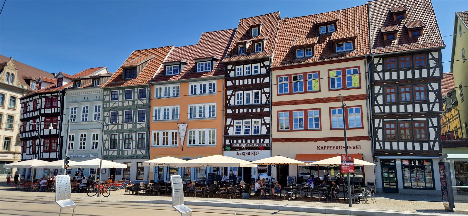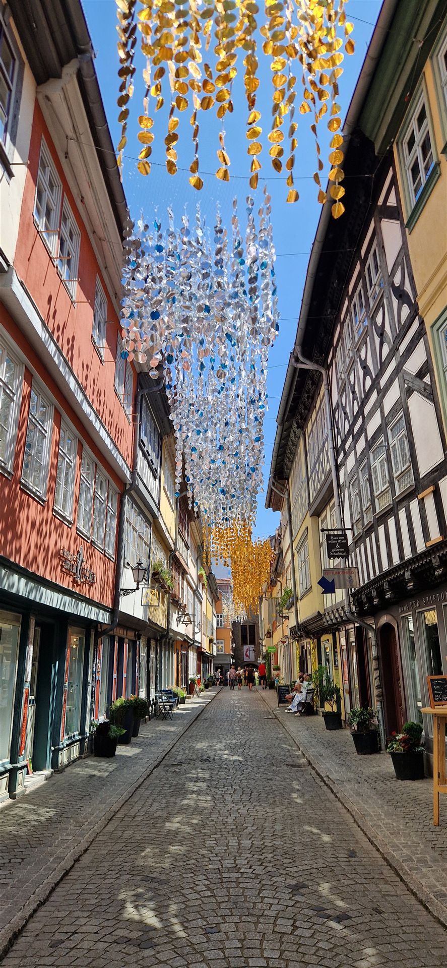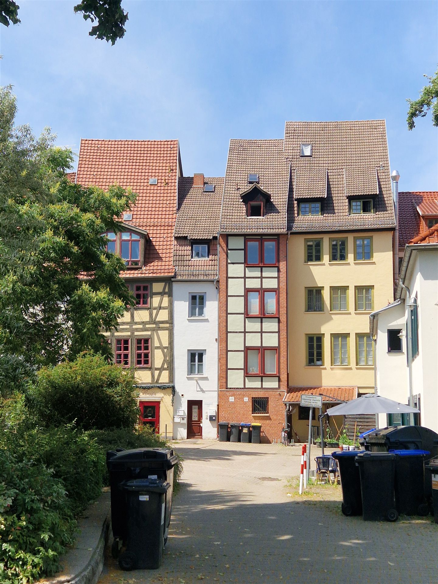 Hier gab es auch große Bäume in Blumentöpfen und sehr schmale Häuser.