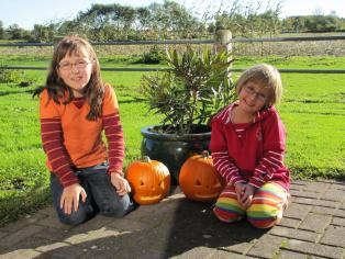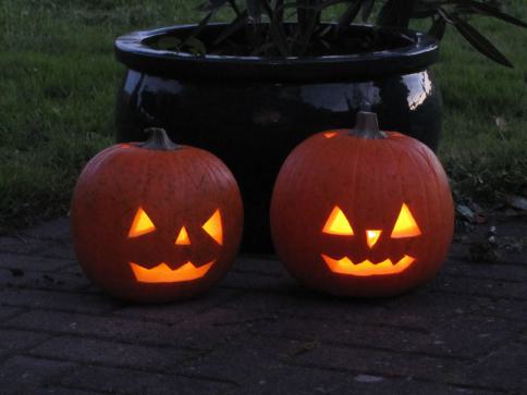 Die am vormitag ausgekratzen Kürbisse leuchteten