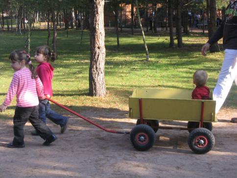 Am Ende eines sehr schönen Ausfluges zogen dann Lynn und Leonie Henrike im Bollerwagen zum Ausgang. |