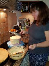 Langsam nahm die Torte Gestalt an und sie wurde bestimmt rechtzeitig fertig.