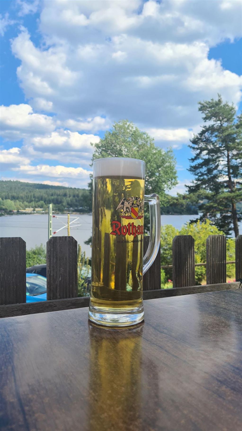 Wir wurden auch schnell fündig, nur leider sah es ziemlich voll aus. Wir wollten gerade weitergehen, da erhoben sich Gäste und wir ergatterten einen Tisch mit Sicht auf den See.