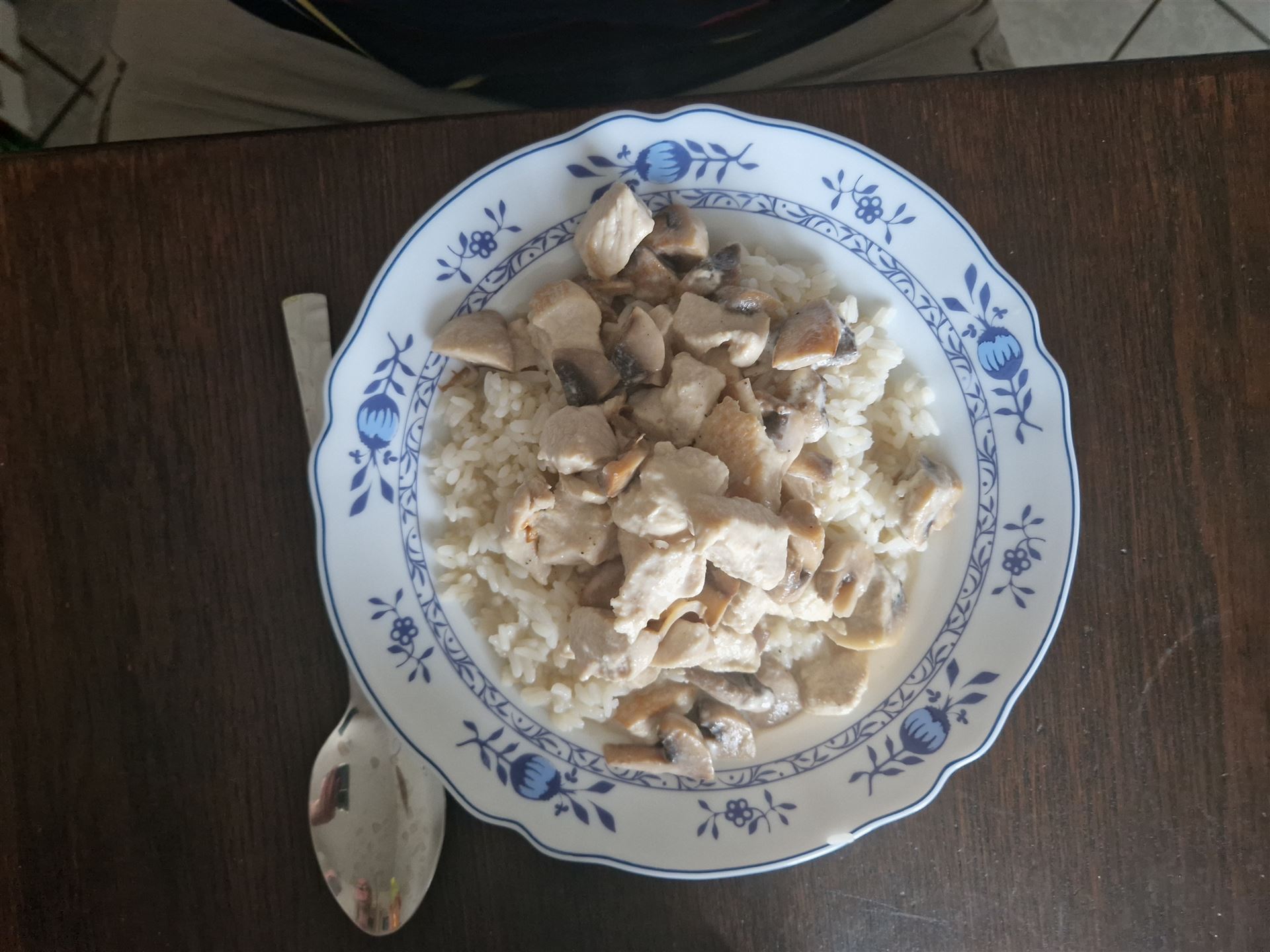 Es gab Kartoffelbrei mit Leberkäse, Spiegelei und Paprika.