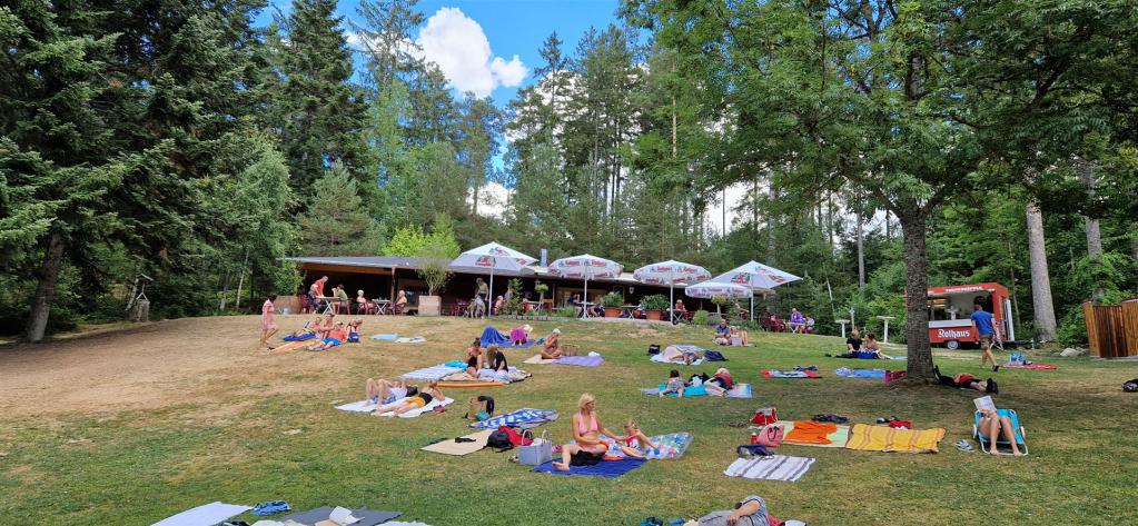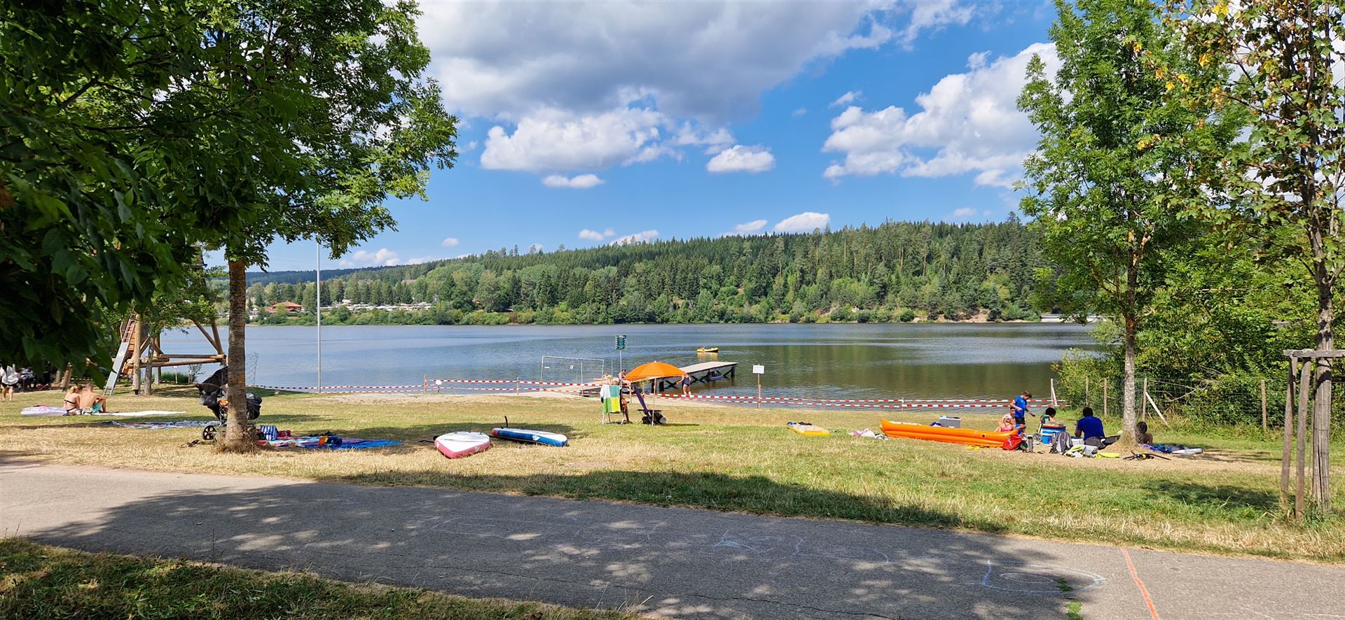 Nun wollten wir nur noch weg von den Menschenmassen. Leider gab es direkt am See keinen Wanderweg. Wir wollten aber noch das Strandbad begutachten und liefen trotzdem los.