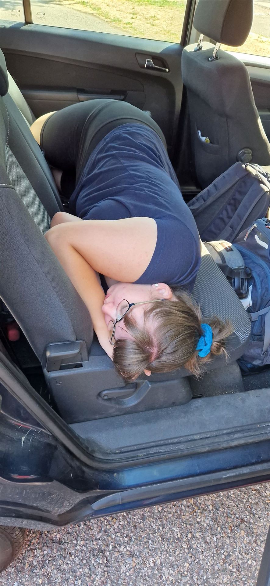 Auch während der Fahrt zum Wanderparkplatz Boll hielt sich die Laune bei Leonie und Henrike in Grenzen.