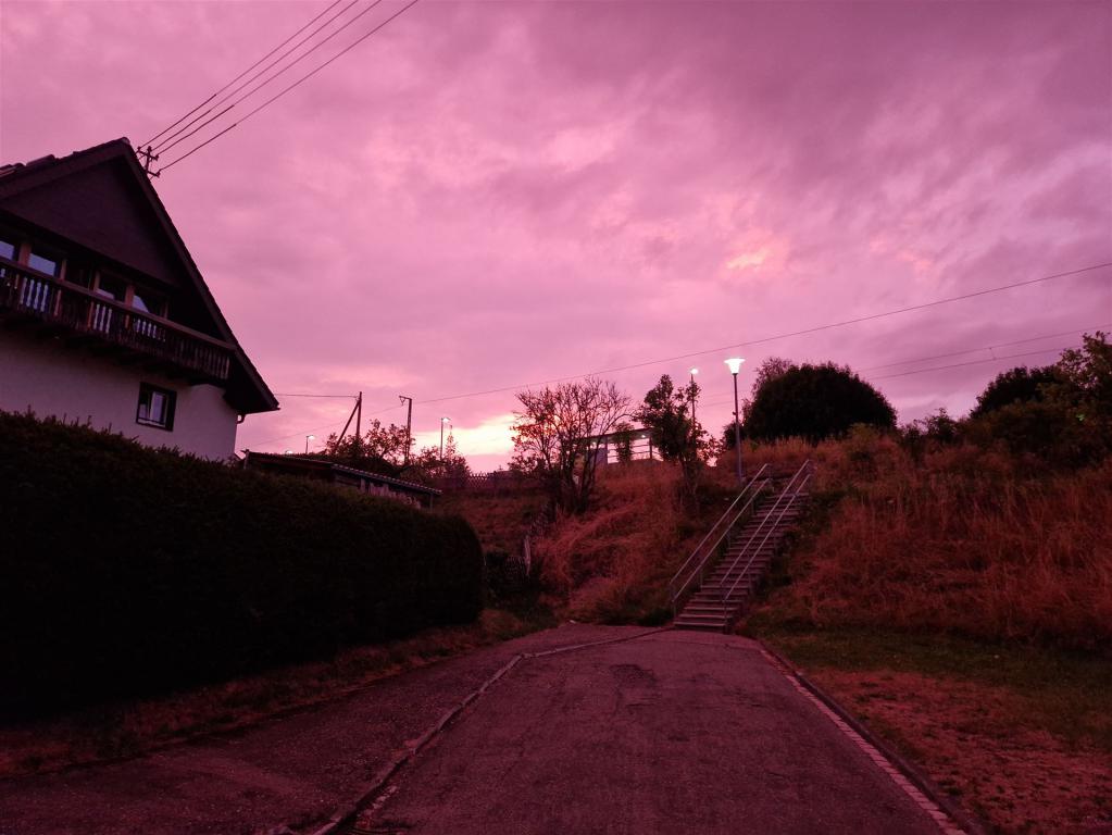 In Rötenbach war am Abend der Himmel bedeckt, denn es sollte in der Nacht regnen. Wir drückten der Natur die Daumen.