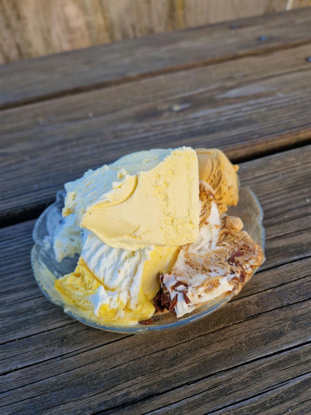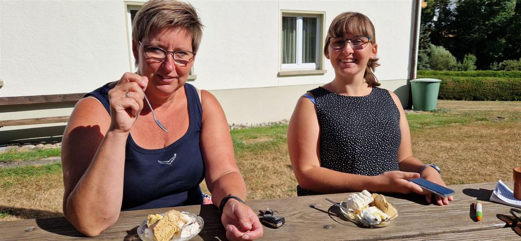 Dort setzten wir uns in die Sonne, aßen Eis und spielten Kniffel.