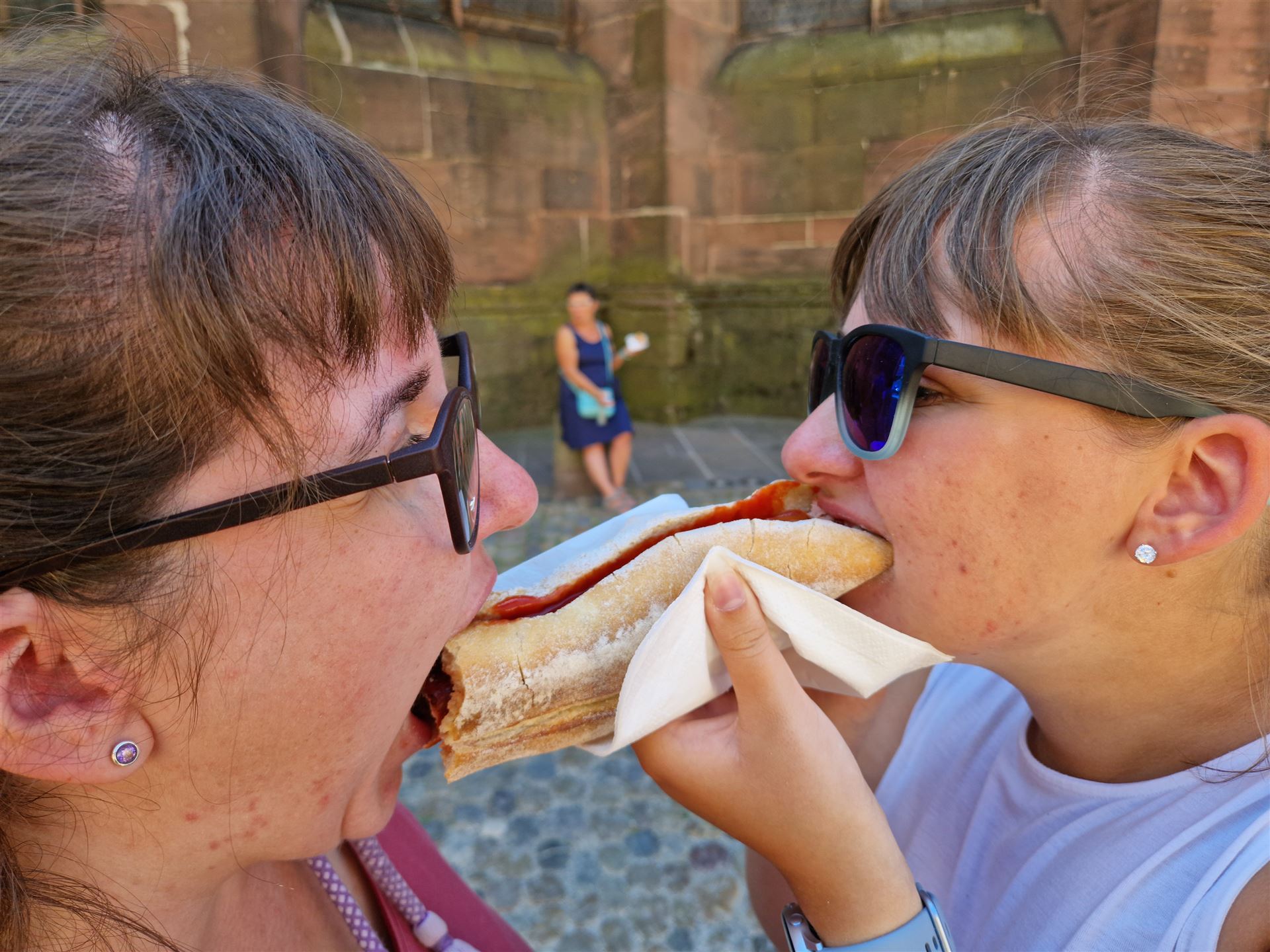 an die wir uns von vor 20 Jahren und in der Kindheit erinnerten, charterten wir sogar ein Boot, dass uns im Eiltempo auf die andere Rheinseite brachte.