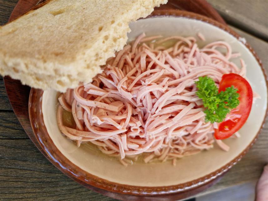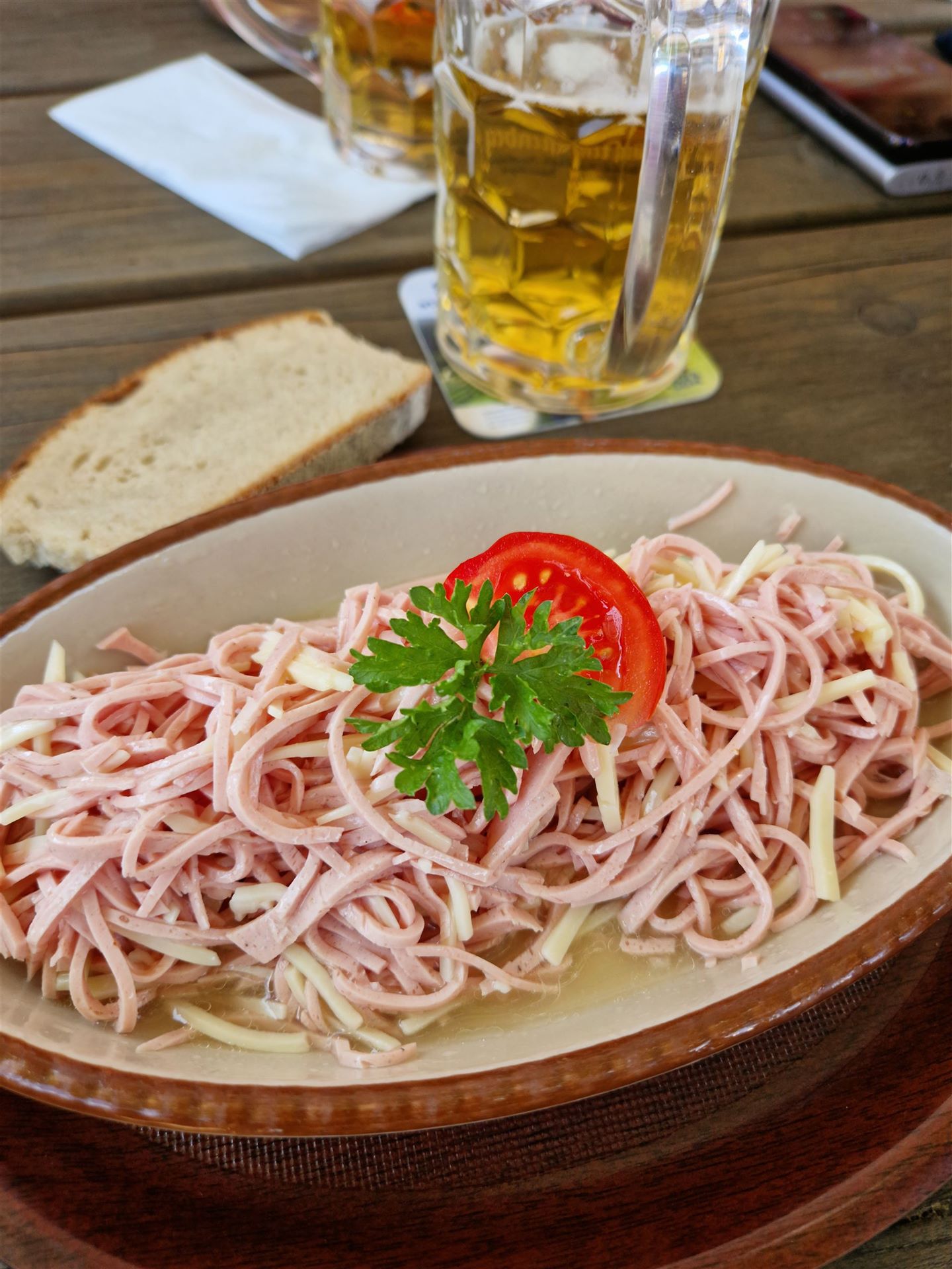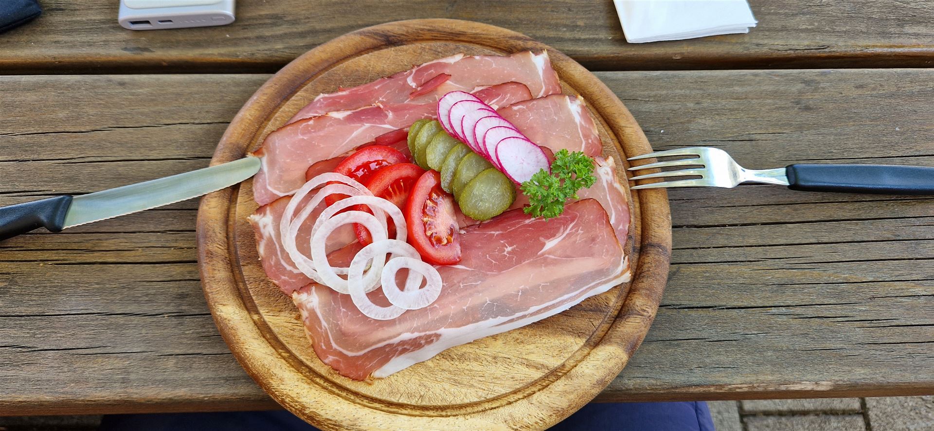 Wir aßen eine leckere Leberkäs-Semmel und deckten uns noch etwas mit geräucherter Ware ein.