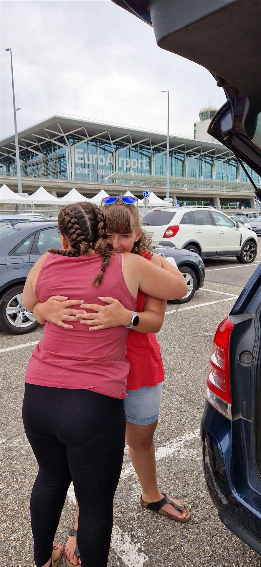 Nach ein paar Problemen mit dem Navi, fanden wir den Flughafen. In der Kurzparkzone konnten wir Leonie verabschieden.