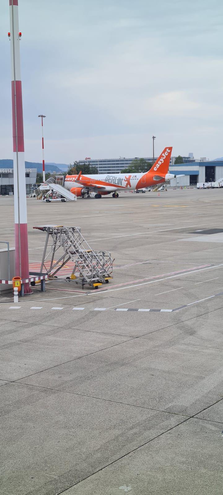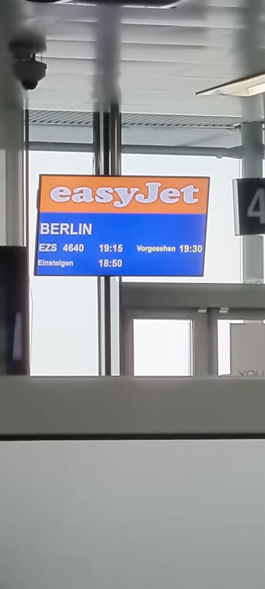 Obwohl auf dem Rollfeld schon ein EasyJet-Flieger mit Berlin-Bemalung stand, hatte ihr Flug 15 Minuten Verspätung.