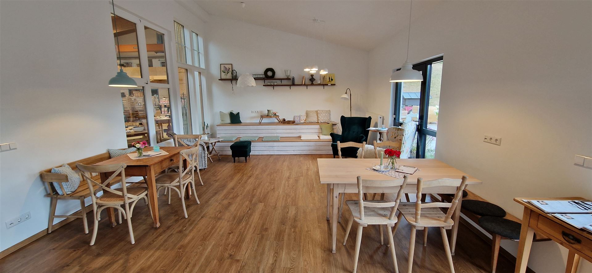Von der schieren Masse an Mehlen und Backmischungen überwältigt gönnten wir uns erstmal ein Stück Kuchen auf der hauseigenen Terrasse.