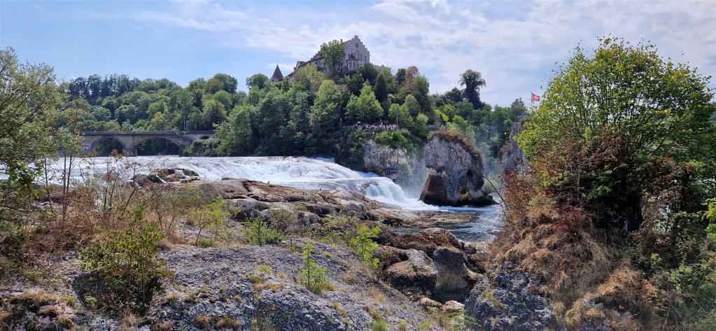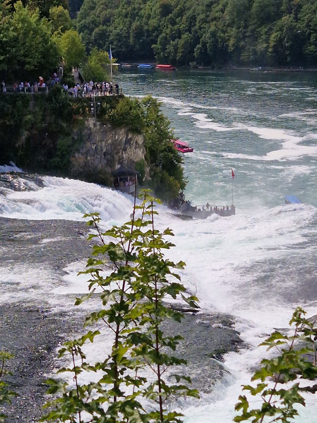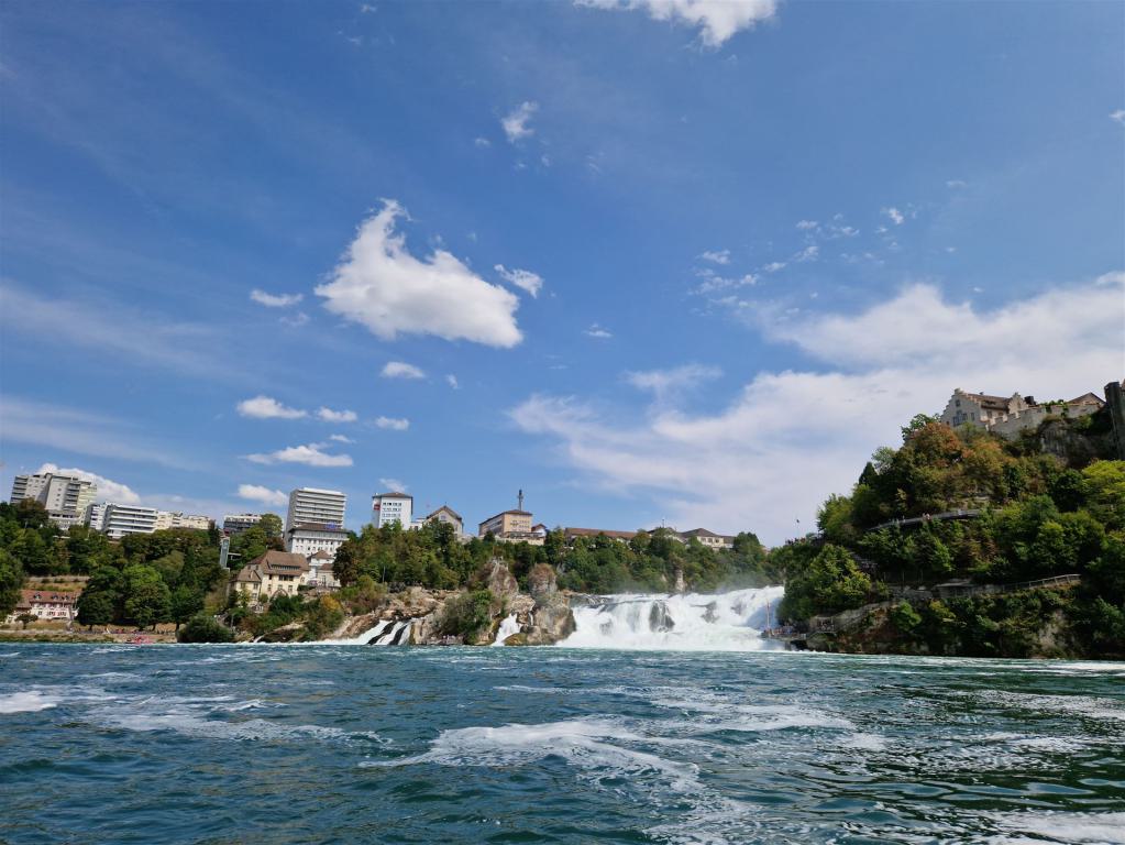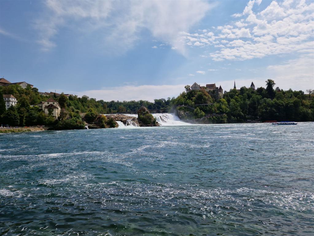 Bis hierhin war es auch alles kein Problem. Doch nun ging die Suche nach einem Parkplatz los. Wir hatten Erinnerungen an unseren letzten Besuch von vor ca. 20 Jahren, aber die Parkplatz-Schilder führten uns in eine unbekannte Richtung. Wenn man den Schildern folgte, landete man in Nirgendwo und irgendwann erschien am Straßenrand ein Parkplatz, der die Kennzeichnung, dass er etwas mit dem Rheinfall zu tun hat, sehr gut verbarg.